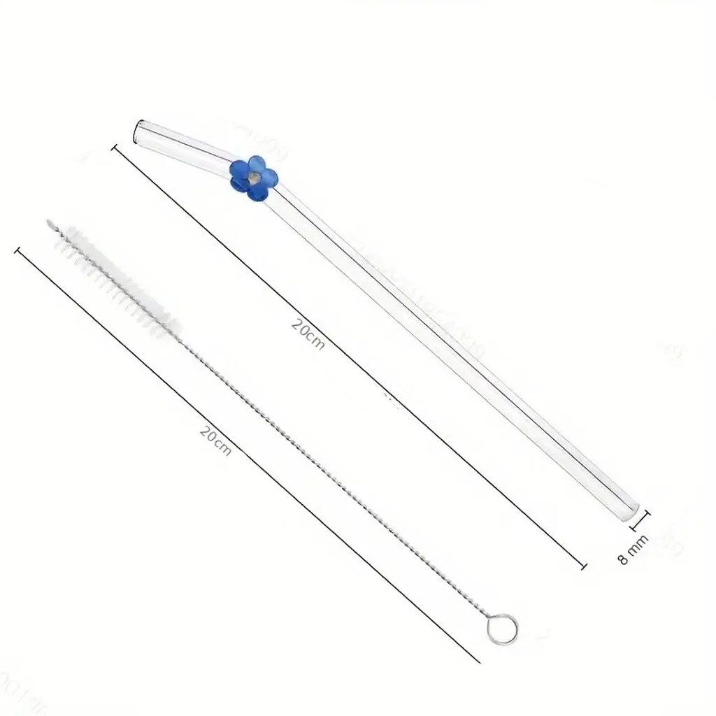 Herbruikbare Glazen Bloemen Rietjes Set – 4 glazen rietjes met Schoonmaakborstel – Rietjes voor Feestjes, Bruiloften, Keuken & Strand – Decoratief & Milieuvriendelijk – Geschikt als Geschenk - smoothies, cocktails, iced coffee of Matcha