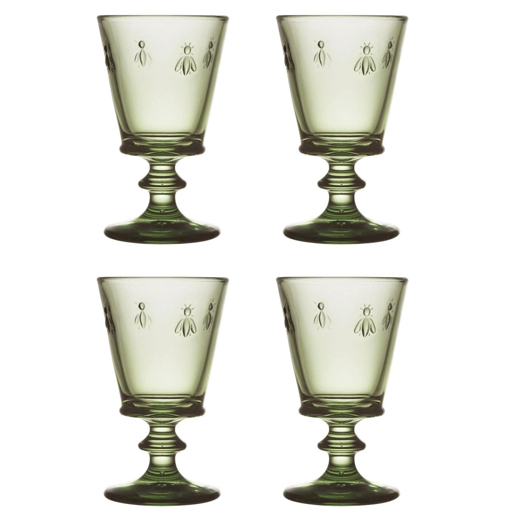 La Rochère Set van 4 Groene Wijnglazen met Bijen Design – Frans Design